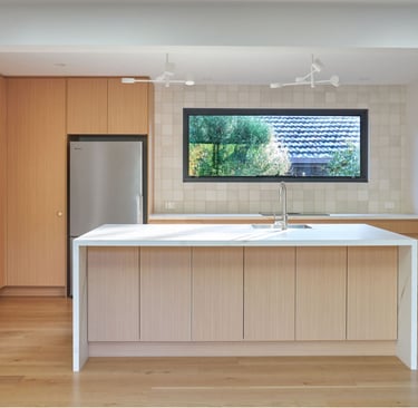 The all-white kitchen dominated Melbourne homes for the better part of a decade. In 2026, we're seeing a significant shift toward warm timber-look cabinetry — either real timber veneer or premium engineered panels that replicate the texture of oak and walnut without the maintenance. These pair beautifully with off-white or warm stone benchtops and brushed nickek hardware. This trend suits the character of our brick veneered homes well.