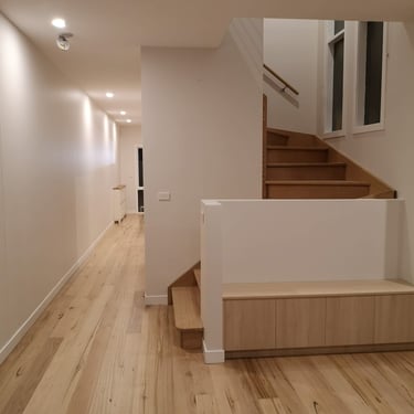 Our whole-home renovation services include: open-plan living and kitchen transformations, bedroom and ensuite additions, bathroom and laundry upgrades, custom joinery and built-in solutions, internal wall reconfigurations, flooring throughout, lighting design, painting and finishing, and full trade coordination including plumbing, electrical and plastering.