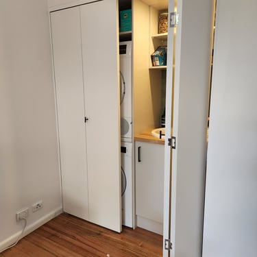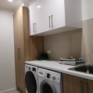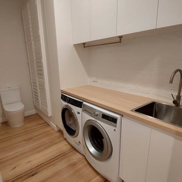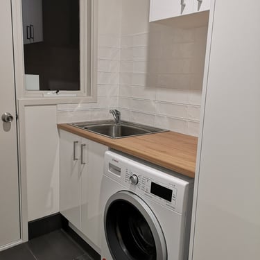 Our laundry renovation services include: full strip-outs and rebuilds, custom cabinetry and joinery, euro-laundry conversions, stone and laminate benchtops, tiling, trough and sink installation, washer and dryer integration, drying cabinet design, storage solutions, and full plumbing and electrical coordination. Whether you want to transform a cramped laundry into a beautiful and efficient space, convert a bathroom into a combined laundry, or create a euro-laundry in a previously unused area of your home — we have the design skills and building expertise to make it happen.